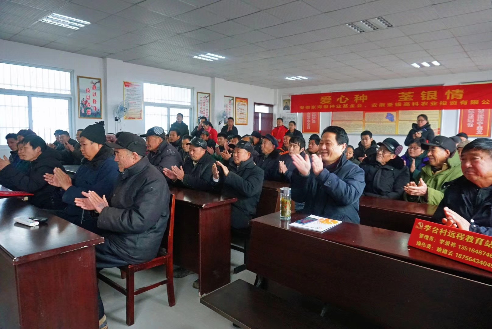 ??? 臘月的古城壽縣,寒風(fēng)凜冽,壽縣迎河鎮(zhèn)李臺(tái)村村委會(huì)的會(huì)議室卻溫暖如春。1月12日,安徽荃銀高科農(nóng)投有限公司攜手安徽張海銀種業(yè)基金會(huì)及壽縣金豐公社有限公司走進(jìn)壽縣迎河鎮(zhèn)開展“穗悅”精準(zhǔn)扶貧項(xiàng)目活動(dòng)。為當(dāng)?shù)?0戶建檔立卡的貧困戶每戶送去優(yōu)質(zhì)水稻種子和化肥。壽縣扶貧辦副主任徐中貴、縣殘聯(lián)副理事長陳慶華,壽縣迎河鎮(zhèn)黨委書記李景練、副鎮(zhèn)長戴紹江,基金會(huì)秘書長張彤、安徽荃銀高科農(nóng)投有限公司總經(jīng)理助理鄭運(yùn)衛(wèi)、金豐公社總經(jīng)理滕玉磊等參加了活動(dòng)。